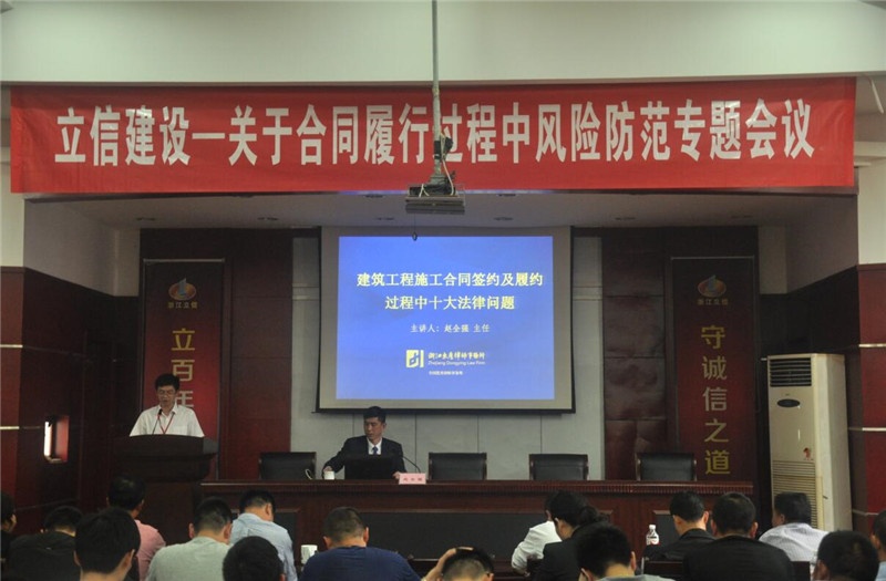 眾所周知,在履行合同的過程中存在許多的風(fēng)險,為提高公司全體成員風(fēng)險防范意識,解決工作中所遇到的問題,確保公司正確開展工作,維護(hù)公司正當(dāng)利益,公司聘請了浙江東鷹律師事務(wù)所趙全強(qiáng)律師為本次會議主講人。本次培訓(xùn)會議旨在解決合同簽約及履約過程中的風(fēng)險防范以及如何應(yīng)對風(fēng)險。