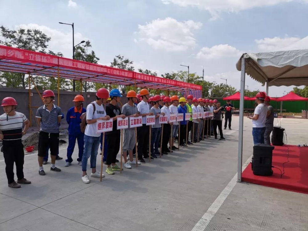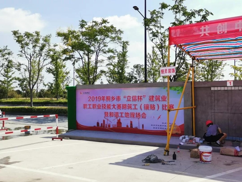 今日,2019屆桐鄉(xiāng)市“立信杯”建筑業(yè)職工職業(yè)技能大賽砌筑工(鑲貼)比賽暨和諧工地現(xiàn)場(chǎng)會(huì)在我司錦程幼兒園項(xiàng)目工地上舉行。