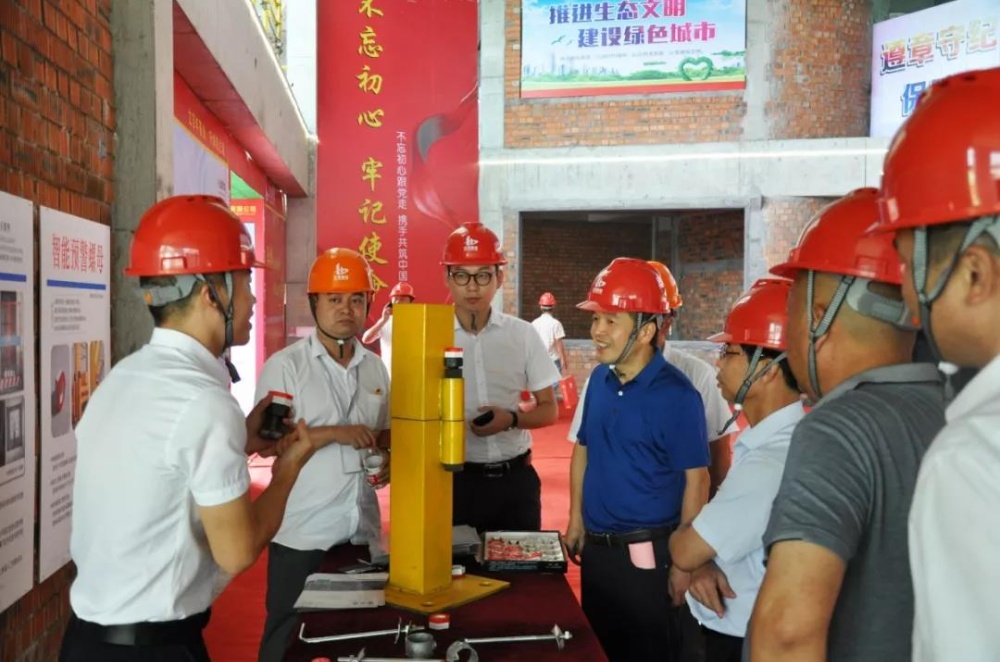 該現場會分為兩個階段,第一階段是現場觀摩,主要內容是“四色工地”創(chuàng)建標準展板觀摩及建設成果及展示,第二階段是領導發(fā)言及交流。通過現場工程實體、圖板展覽、體驗區(qū)、現場宣講,以及分別展示“綠色工地”揚塵防治設備及措施、“藍色工地”安全防護知識和措施、“紅色工地”臨時黨支部建立、“金色工地”掃黑除惡宣傳等多種形式,生動形象地展示了本次現場會的主題。