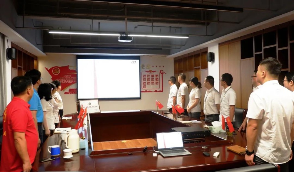直播結(jié)束后,在黨支部書記徐子松的帶領(lǐng)下,全體黨員高舉右手,再次莊嚴(yán)宣誓:“我志愿加入中國(guó)共產(chǎn)黨……隨時(shí)準(zhǔn)備為黨和人民犧牲一切,永不叛黨。”