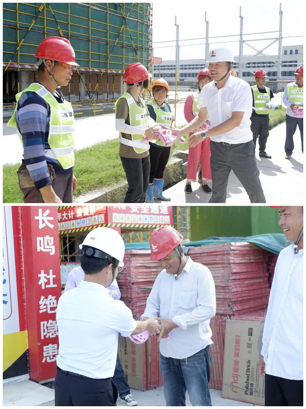 顧總一行實(shí)地了解了項(xiàng)目的建設(shè)情況、安全生產(chǎn)及防暑降溫措施的落實(shí)情況,并為堅(jiān)守在崗位上的一線工友們送上了“清涼”與關(guān)懷。他再三強(qiáng)調(diào)安全第一,現(xiàn)場管理人員要合理調(diào)整高溫天氣作業(yè)時間,全面落實(shí)防暑降溫措施,在保證施工進(jìn)度的同時,全力確保施工人員的人身安全。